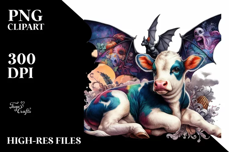 Colorful Watercolor Baby Cow Bat PNG example image 1