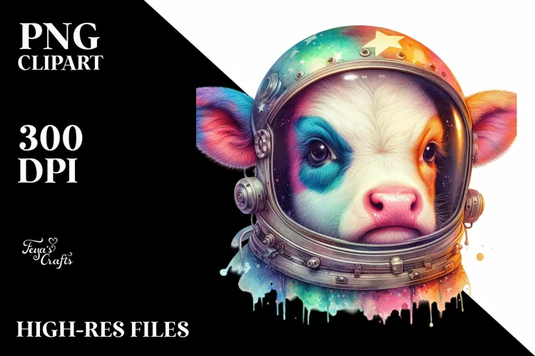 Colorful Baby Cow with Space Helmet