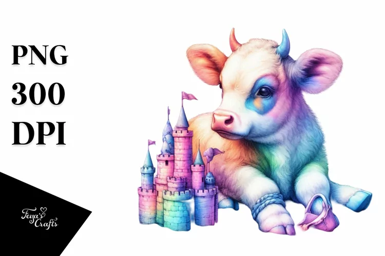 Colorful Pastel Baby Cow Building Sandcastle, Transparent example image 1
