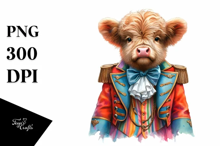 Colorful Highland Cow in Ringmaster's Coat PNG example image 1