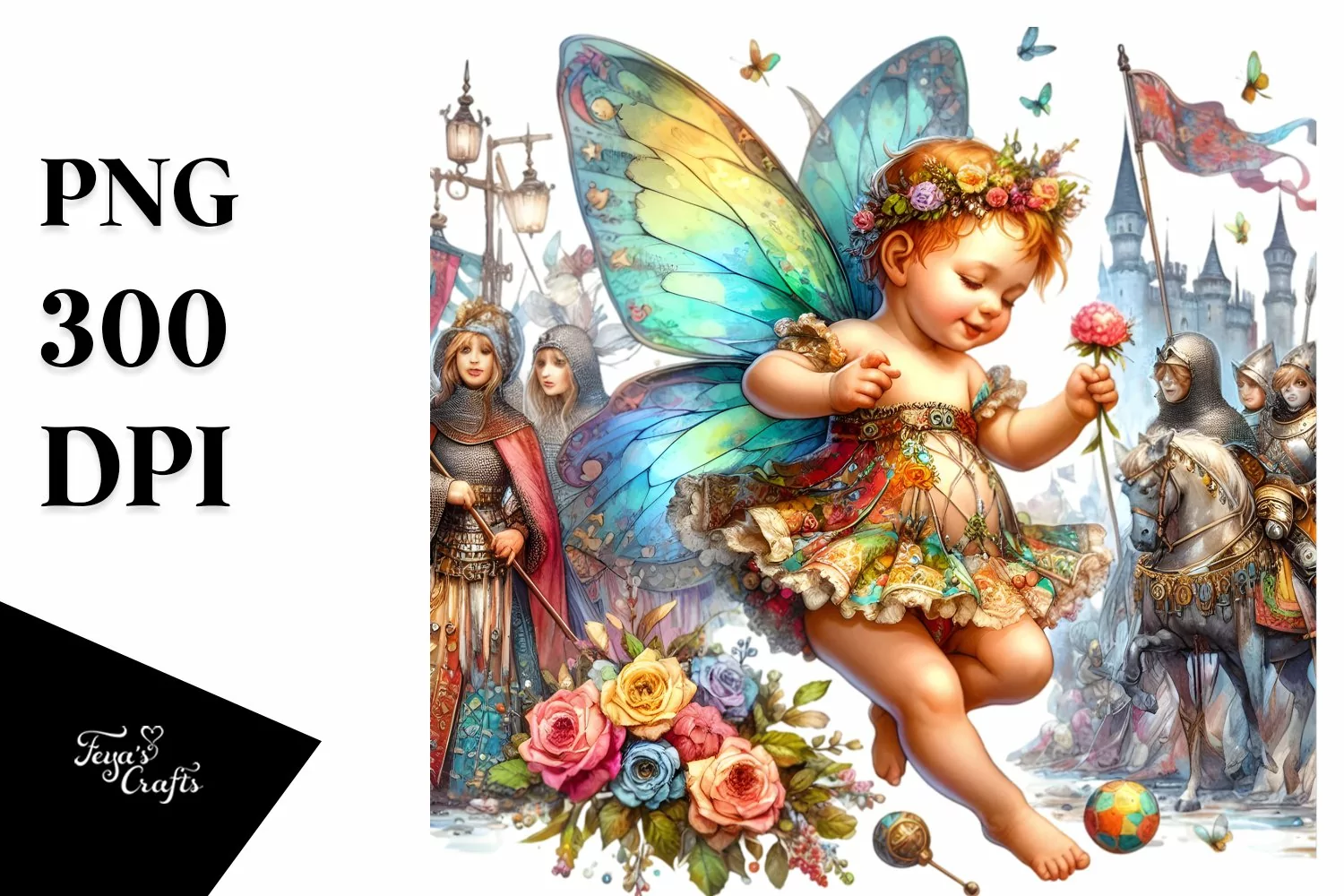 Colorful Baby Fairy with Medieval Festival, PNG example image 1