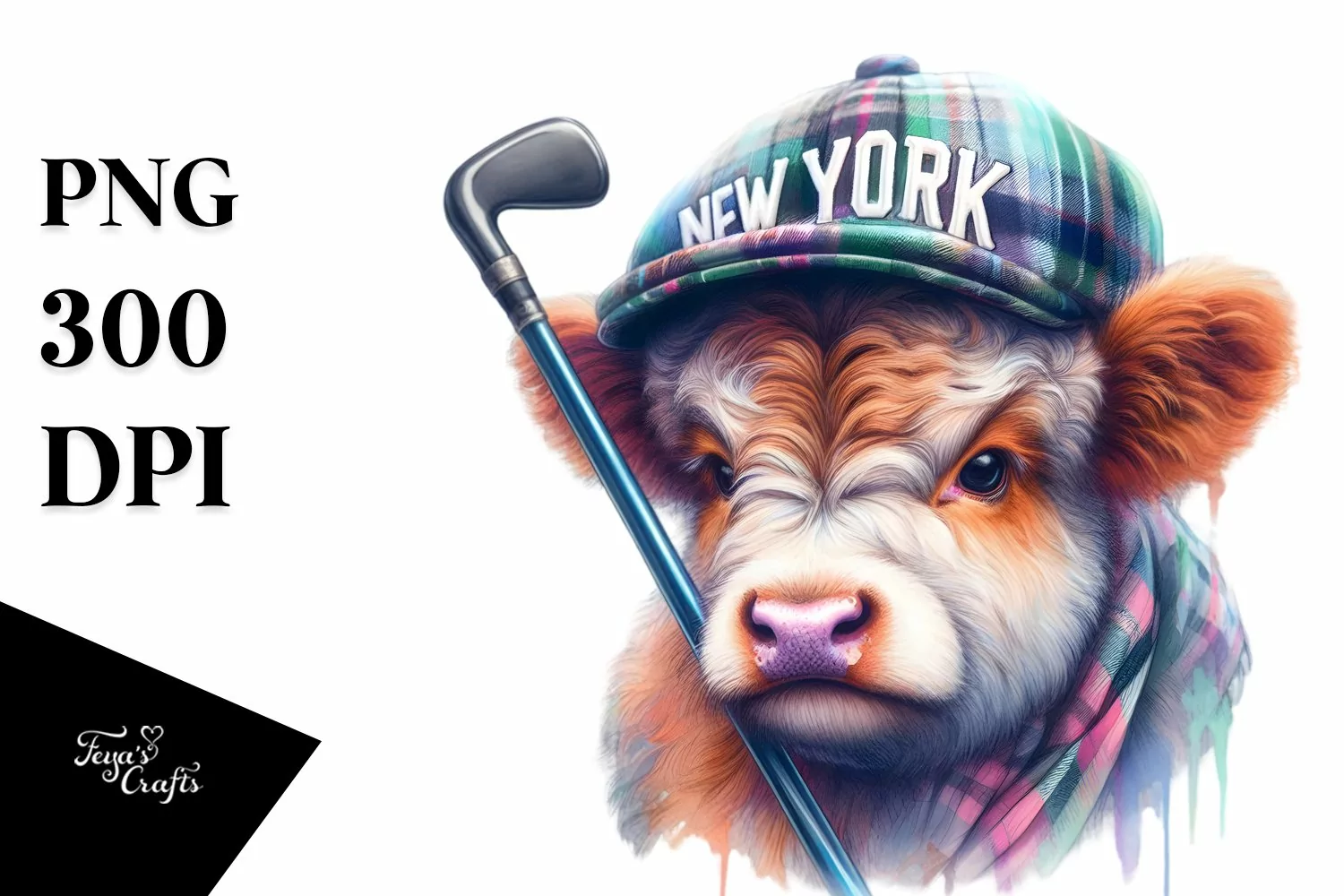 Colorful Baby Highland Cow New York PNG example image 1