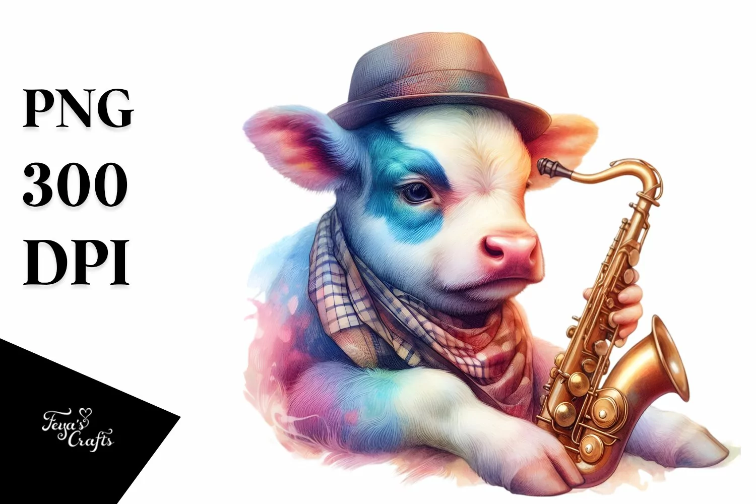 Colorful Baby Cow in Jazz Club PNG example image 1