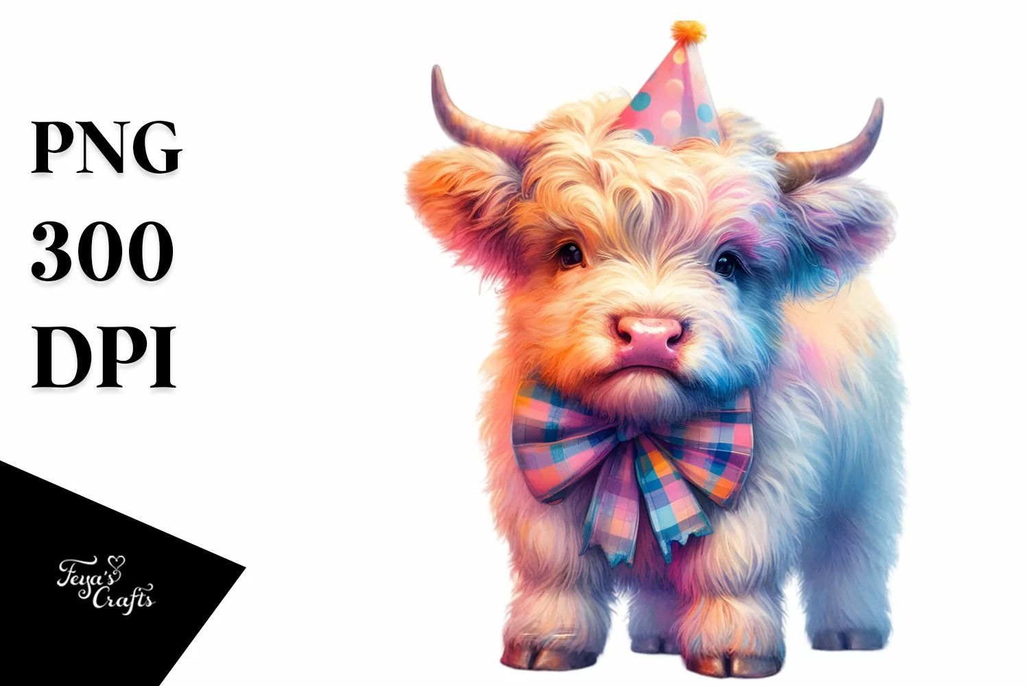 Colorful Baby Highland Cow PNG