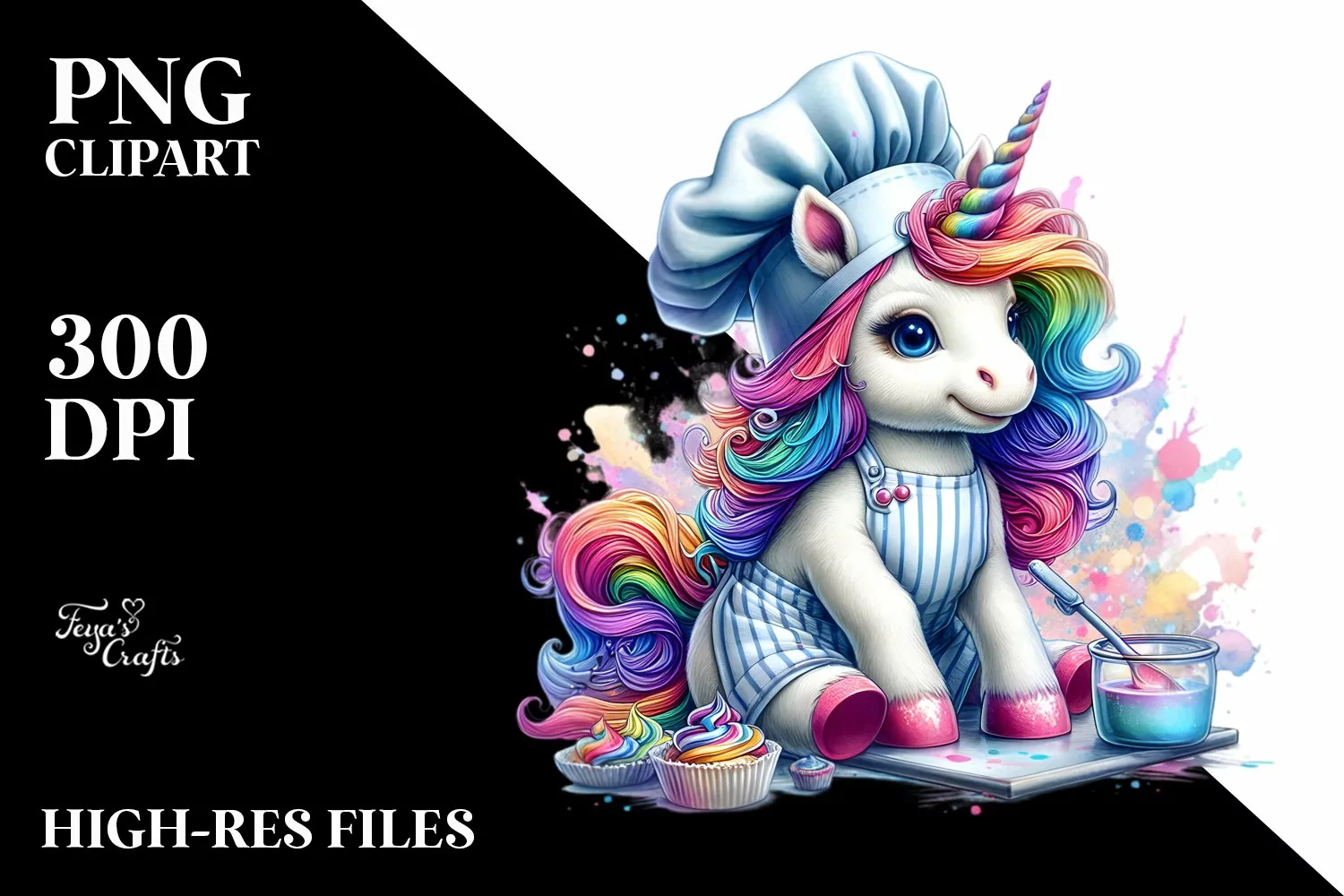 Colorful Baby Unicorn with Baker's Apron PNG example image 1