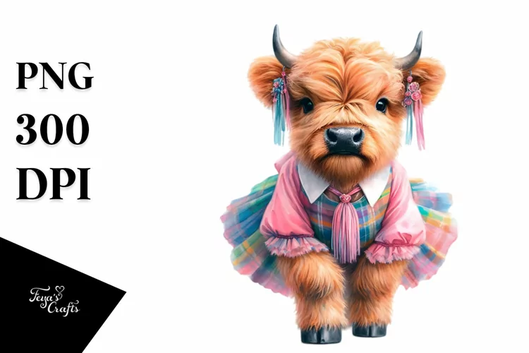 Colorful Baby Highland Cow Foxtrot PNG example image 1