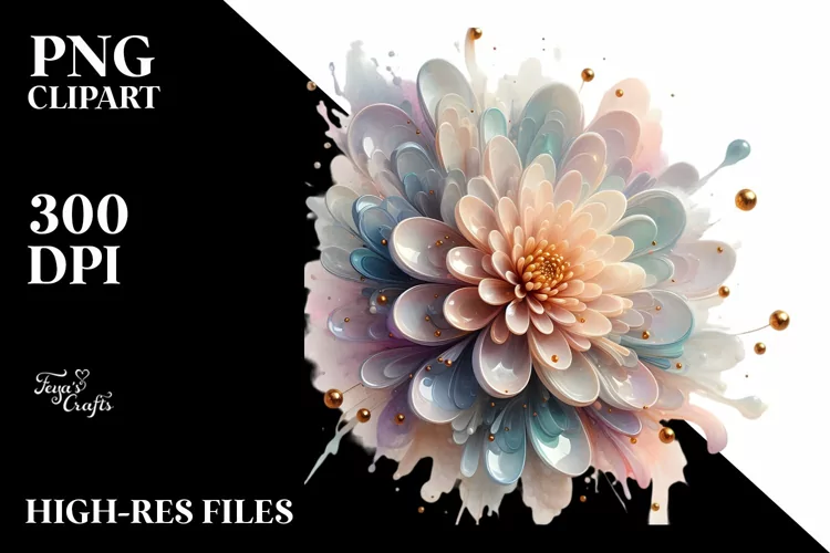 Sticker Summer Flower Glossy Golden Abstract Png Glass Chrysanthemum Sublimation