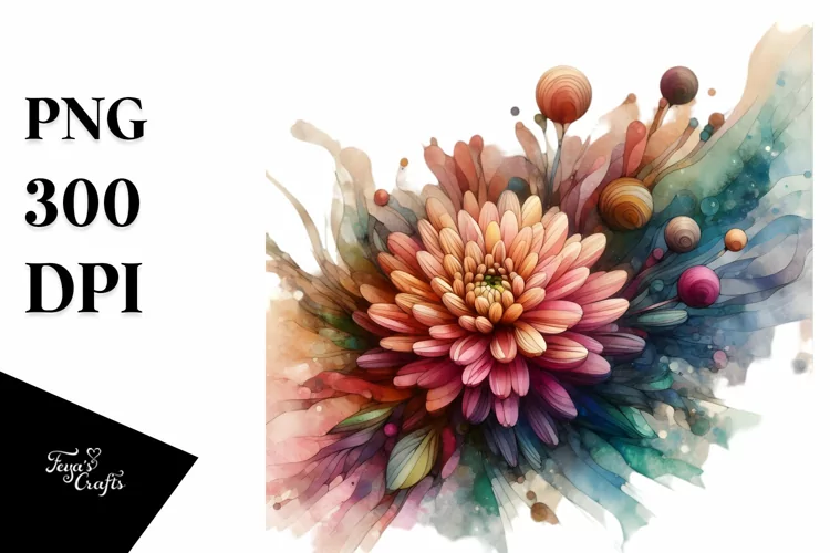 Colorful Stained Chrysanthemum, High-Res PNG example image 1