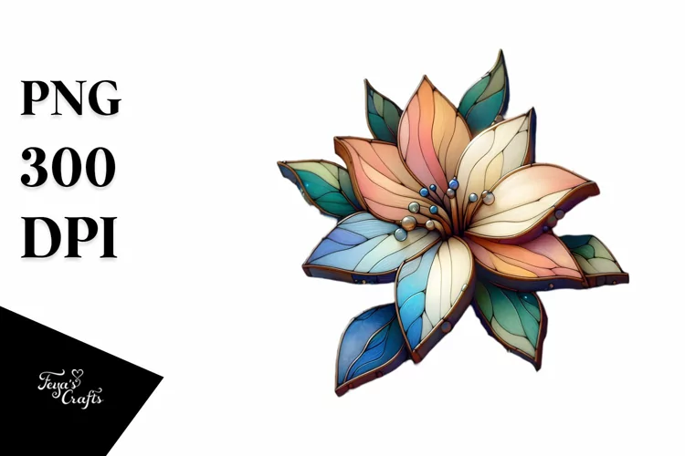 Sticker Summer Flower Abstract Png Sublimation Gardenia Stainedglass Metallicinsertions Glass-likematerial
