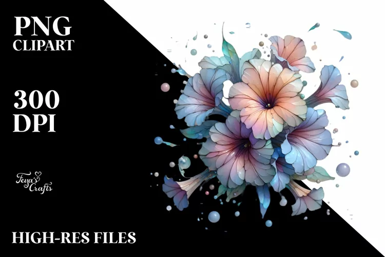 Sticker Summer Flower Glossy Png Pastel Sublimation Petunia Watercolorsplash Glass-like