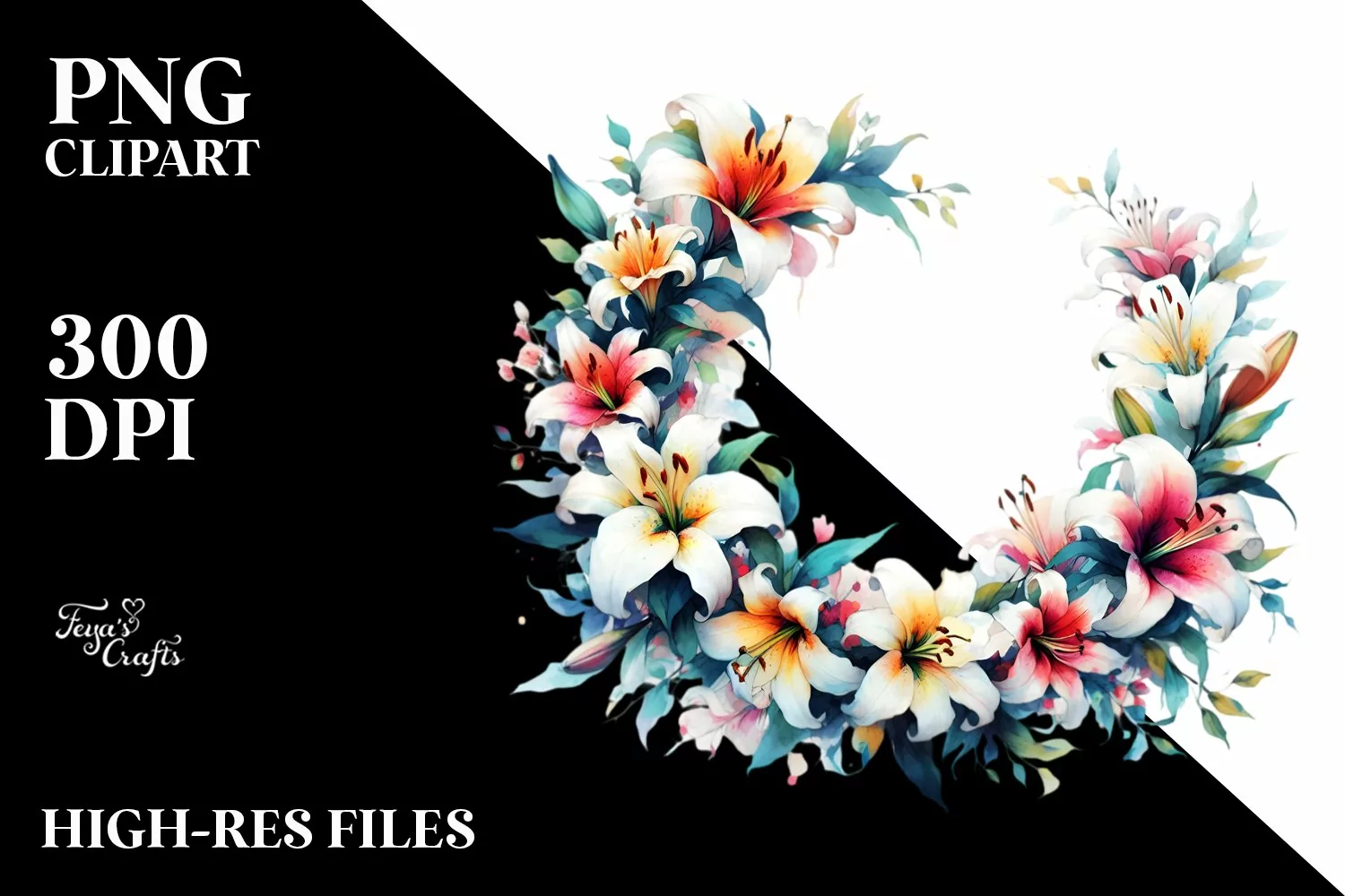 Sticker Summer Flower Lily Png Sublimation Whitebackground Watercolorsplash Horizontalframe