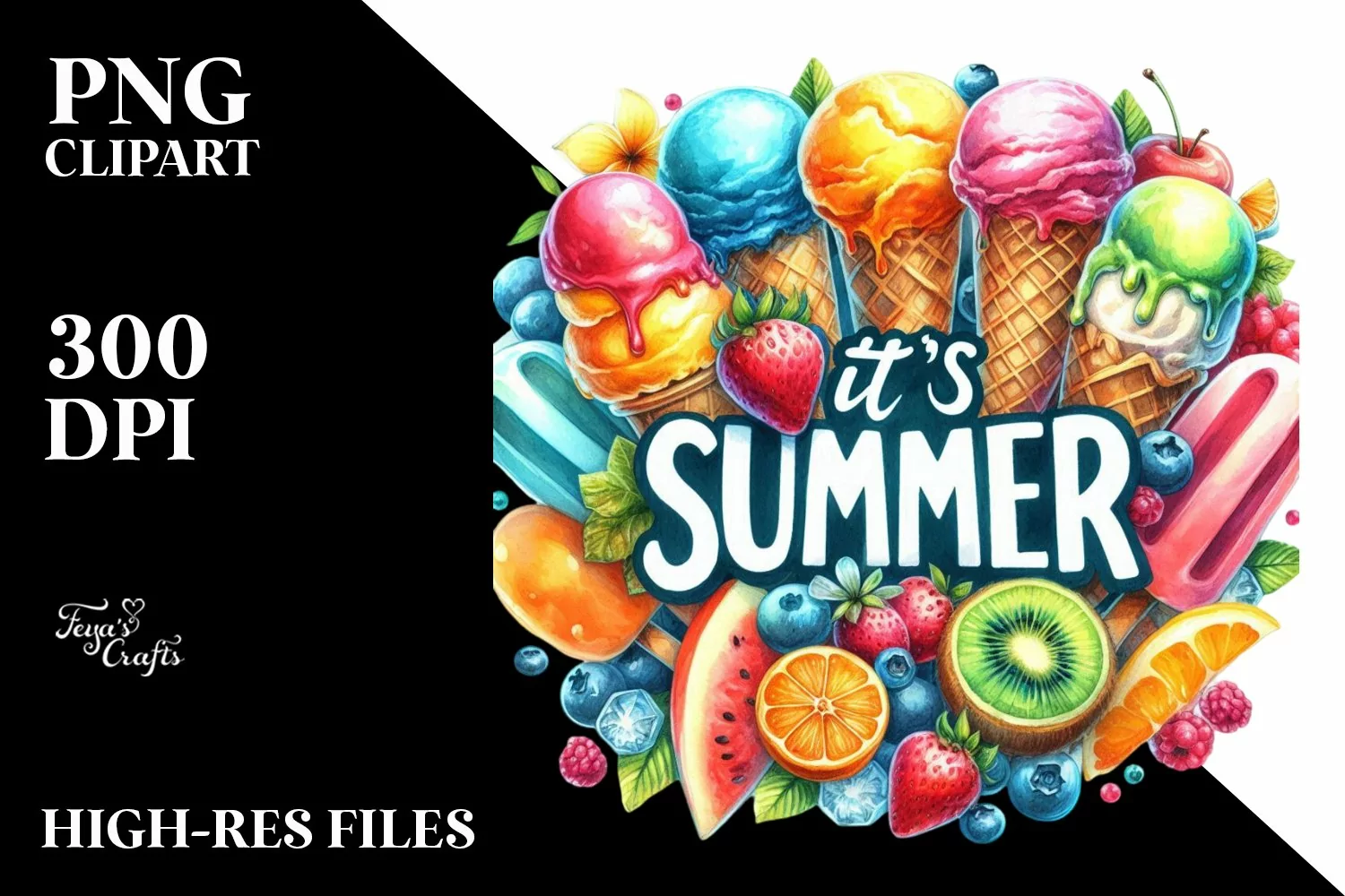 Illustration Watercolor Vibrant Png Sublimation Whitebackground Displayed It'ssummer Prominently Juicyicecreams