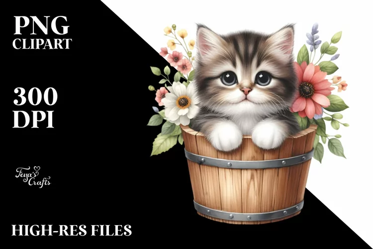 Similar Design Products to Cute Baby Cat in Wood Bucket PNG