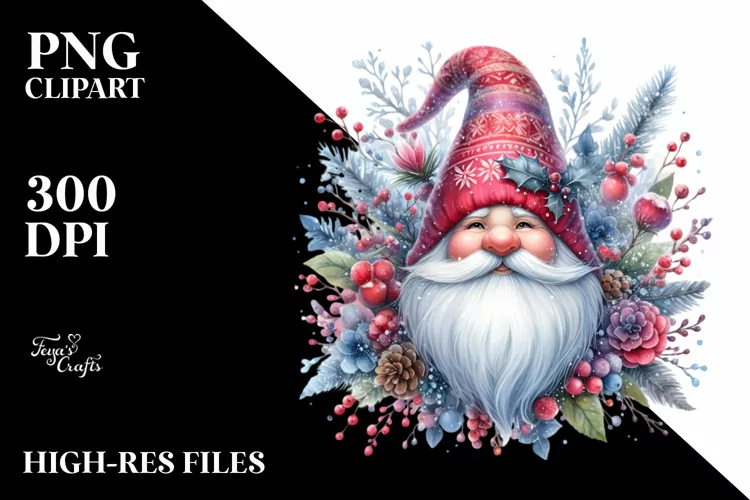 Detailed Vibrant Watercolor Winter Gnome PNG example image 1
