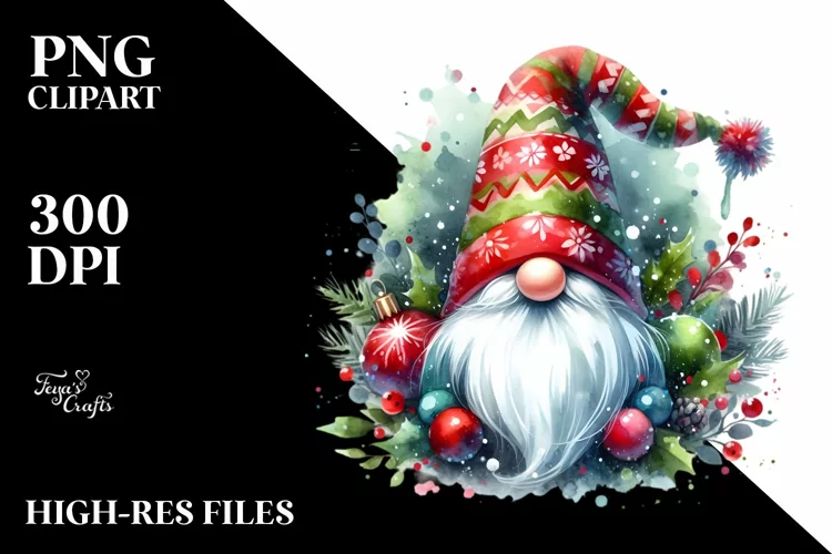 Washed Vibrant Christmas Gnome, PNG example image 1