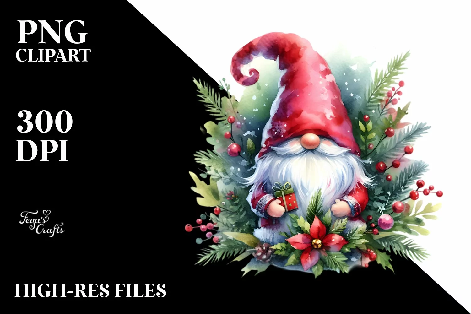 Washed Vibrant Watercolor Christmass Gnome PNG example image 1