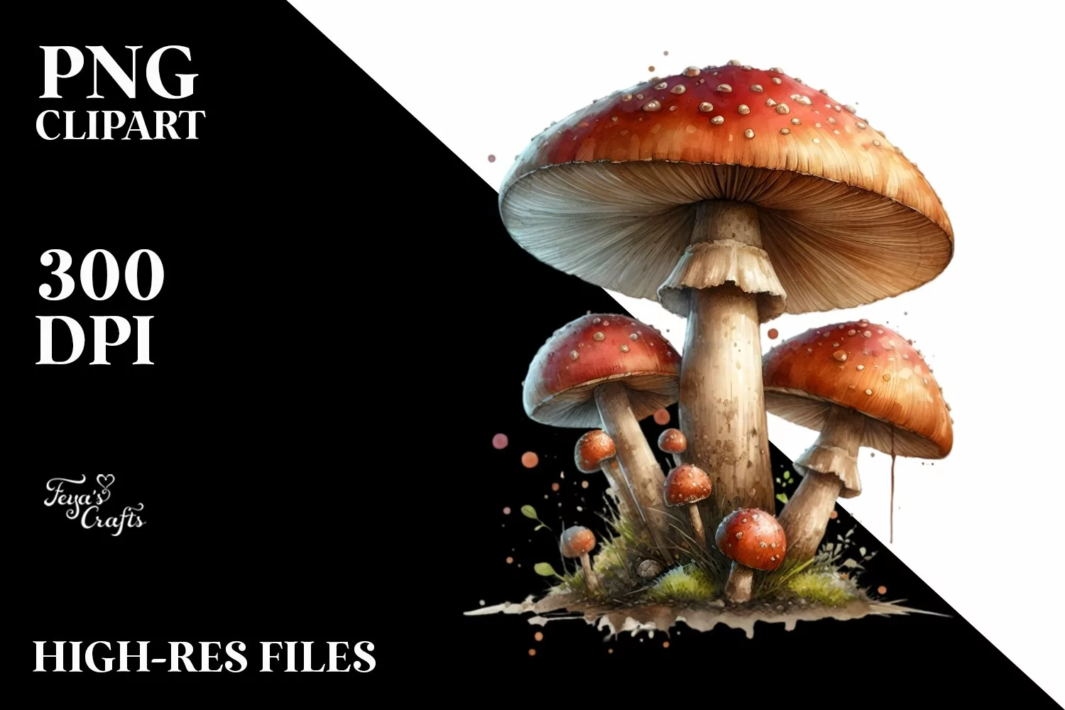 Nature Glossy Forest Garden Detailed Mushroom Plants Enchanted Whitebackground Watercolorsplash