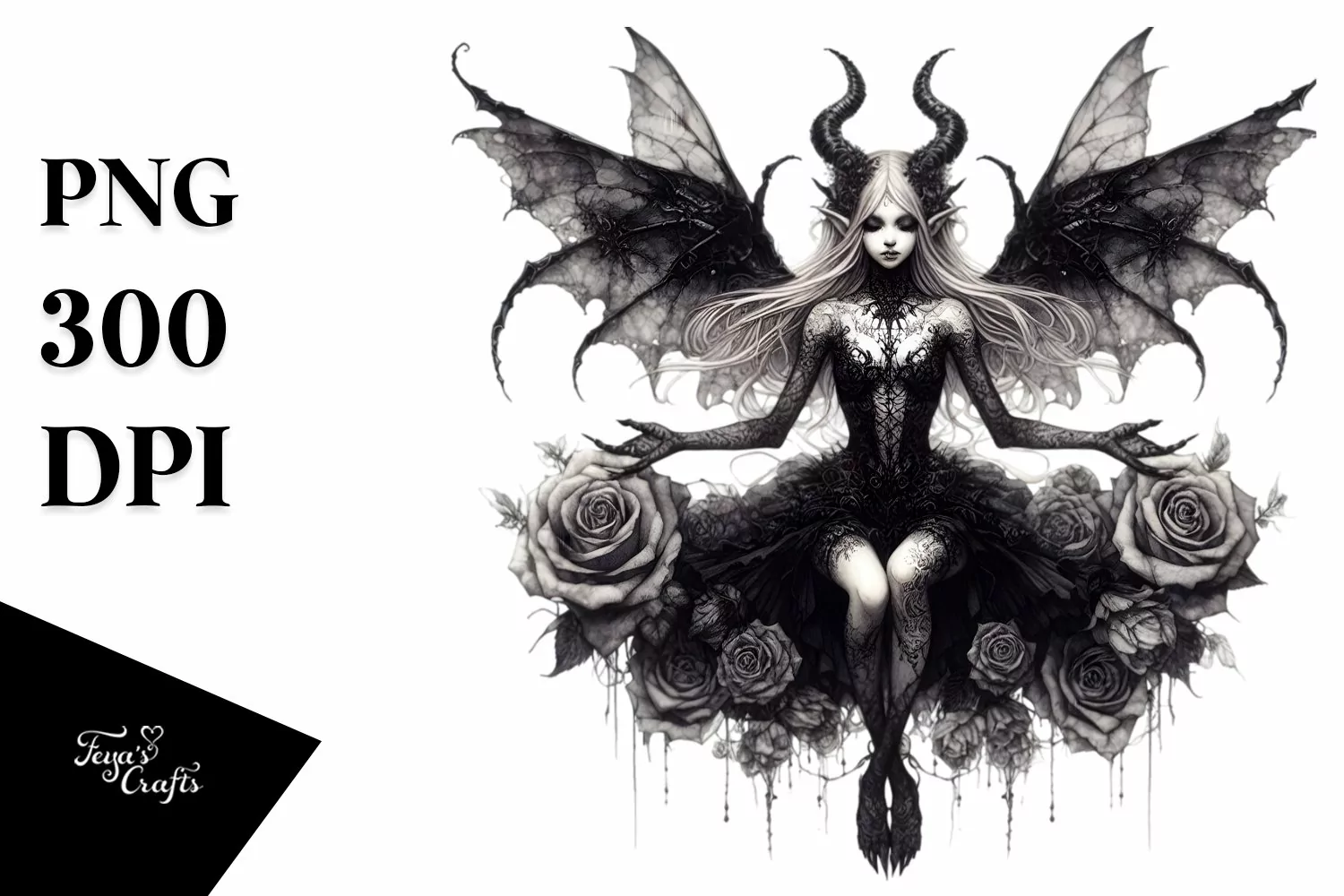 Sticker Gothic Summer Flower Fairy Detailed Png Sublimation Whitebackground Centered