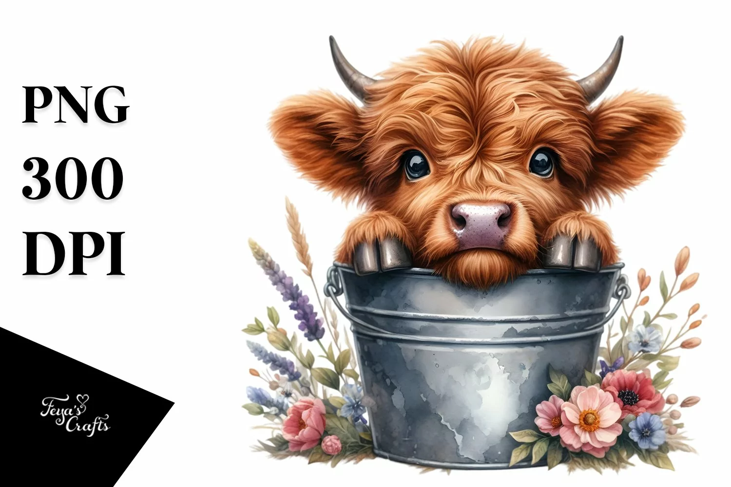 Sticker Summer Flower Png Sublimation Whitebackground Centered Bigeyes Babycat Woodenbucketwithflowers