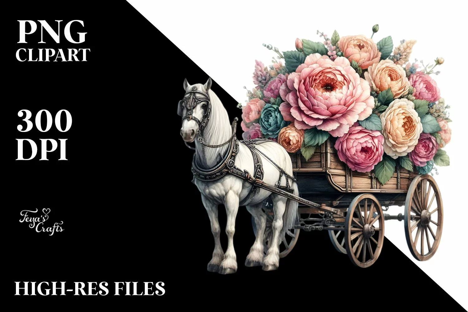 Vintage Watercolor Flowers Splash Detailed Whitebackground Centered Horsewagon
