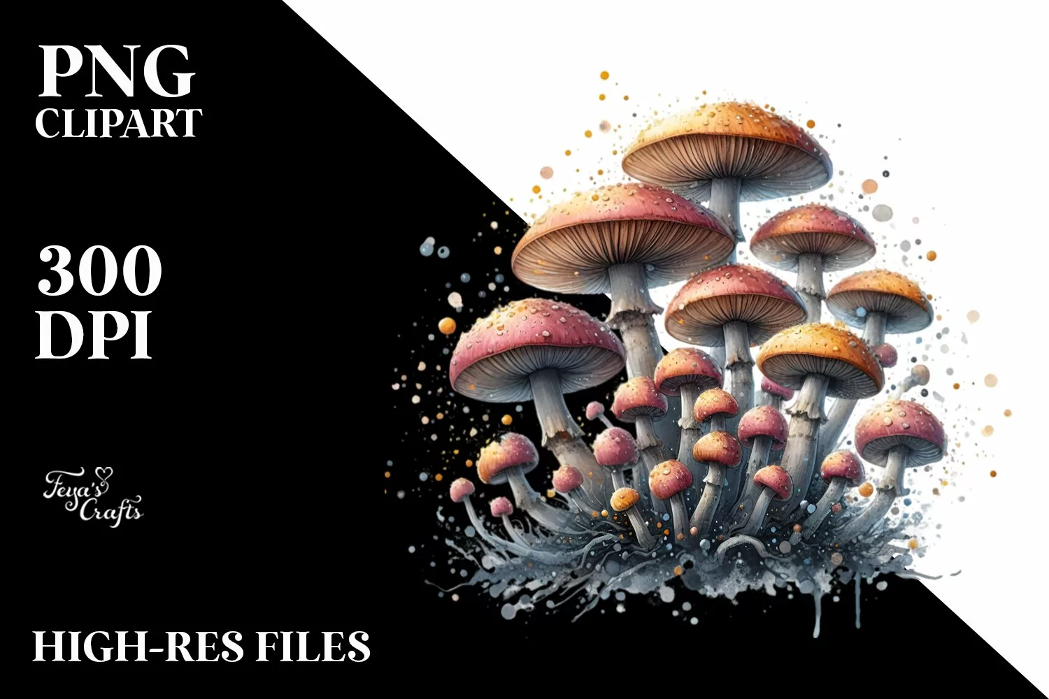 Sticker Summer Flower Detailed Mushroom Sublimation Whitebackground Watercolorsplash Centered