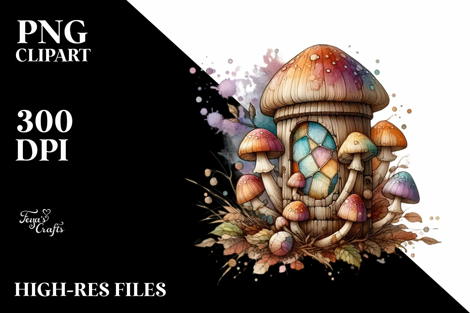 Glossy Golden Wooden Splash Mushroom Pastel Small Stainedglass Transparentglass