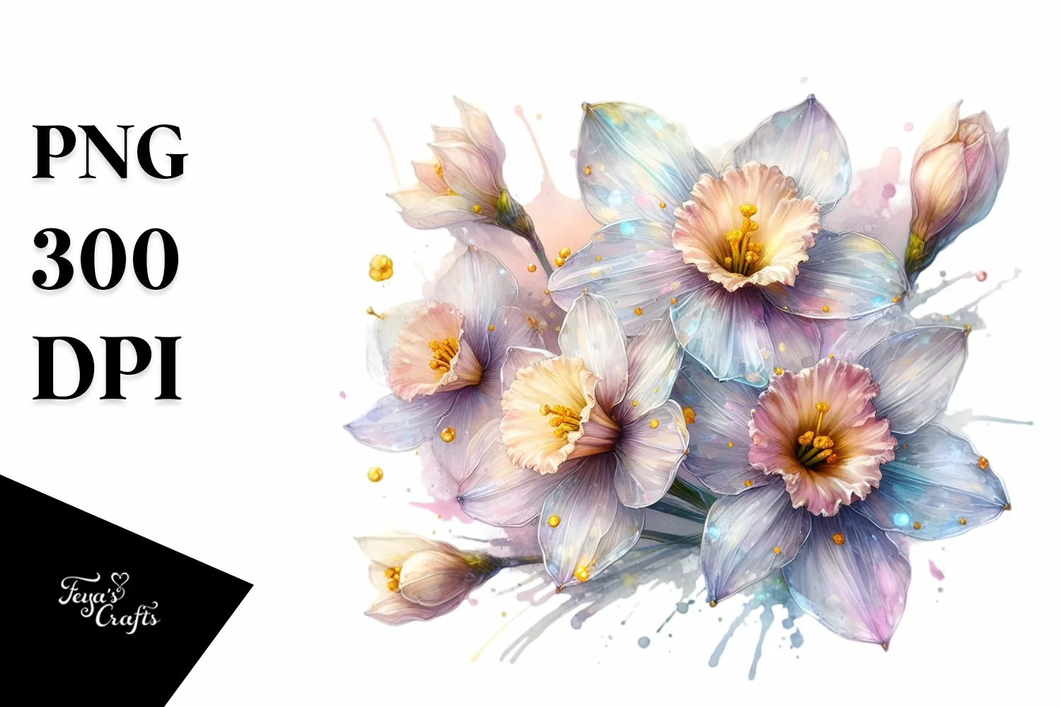 Glossy Transparent Pastel Narcissus, PNG example image 1