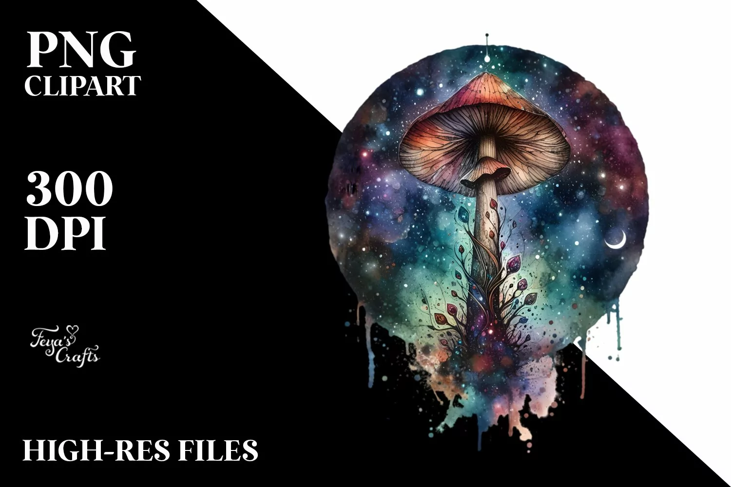 Celestial Mushroom Watercolor Splash