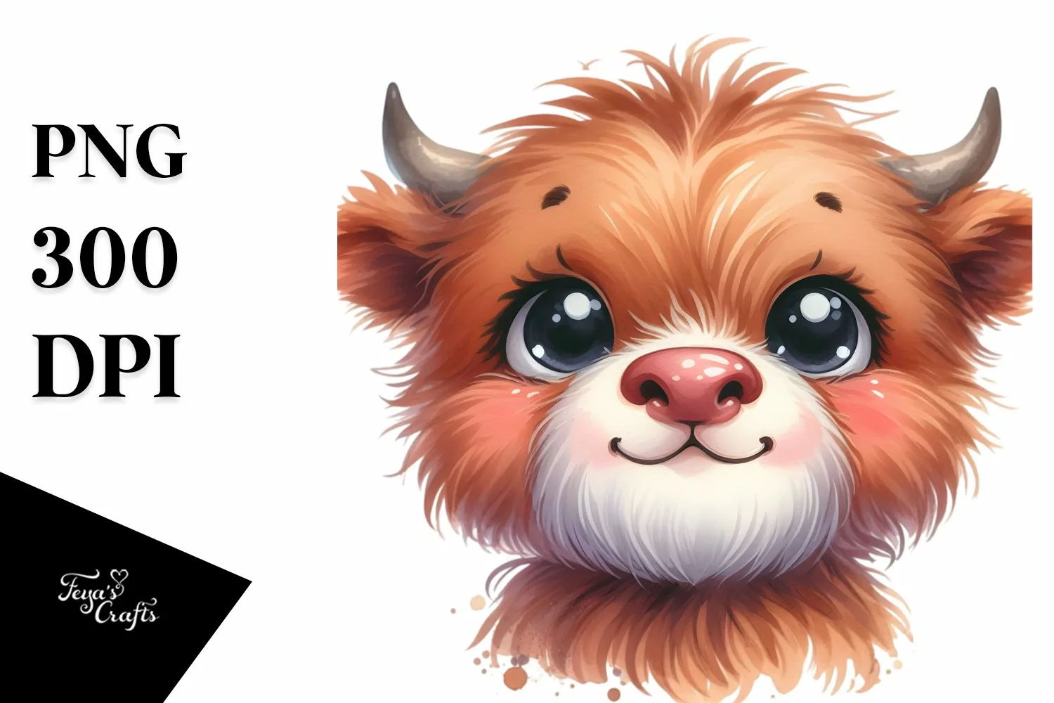 Funny Watercolor Simple Happy Expressive Whitebackground Babyface Highlandcow Bigeyes Caricature-like