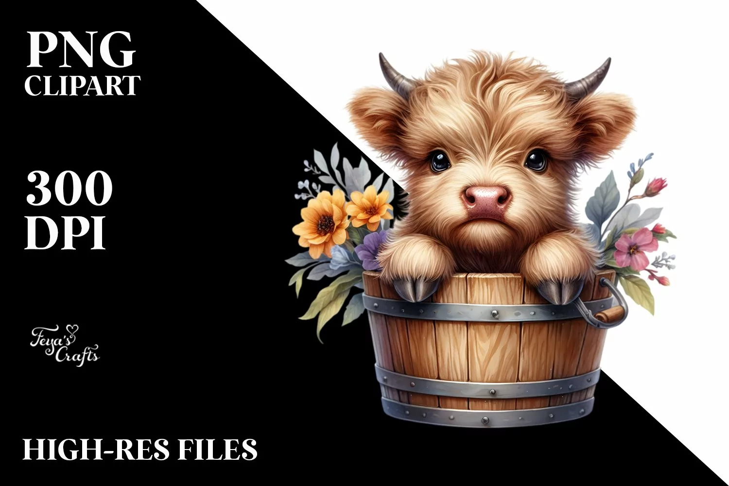 Baby Cow in Wood Bucket, Transparent PNG example image 1