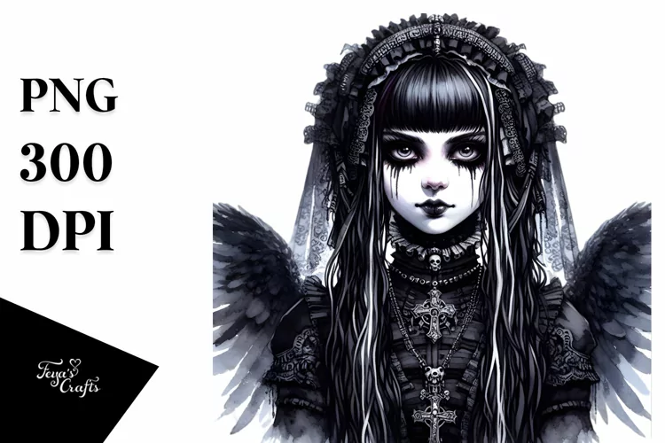 Similar Design Products to Detailed Watercolor Gothic Girl, PNG