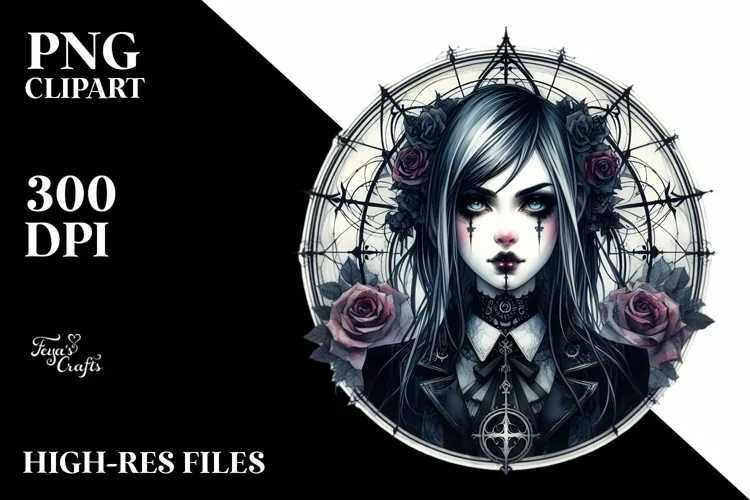 Sticker Gothic Summer Flower Detailed Png Sublimation Whitebackground Centered Gothicgirl
