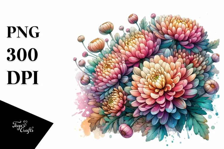 Sticker Summer Flower Png Chrysanthemum Sublimation Whitebackground Watercolorsplash Woodensmallstainedglass Transparentglass
