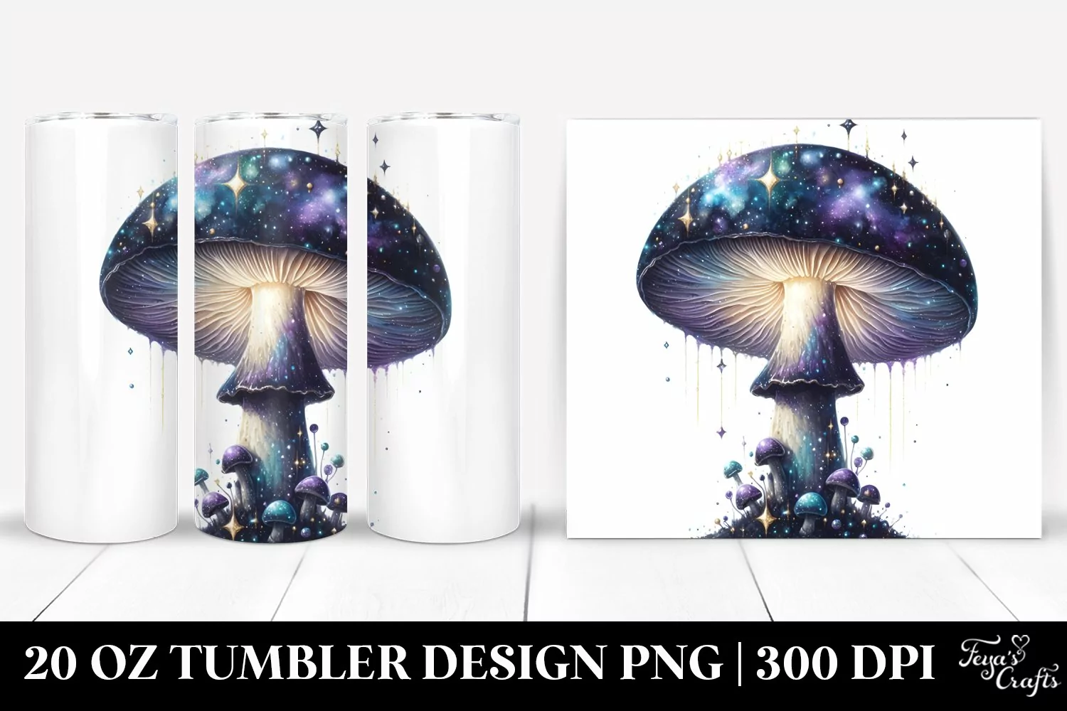 Celestial Shiny Splash Clipart Detailed Png Mushroom Mystical Sublimation Tumbler