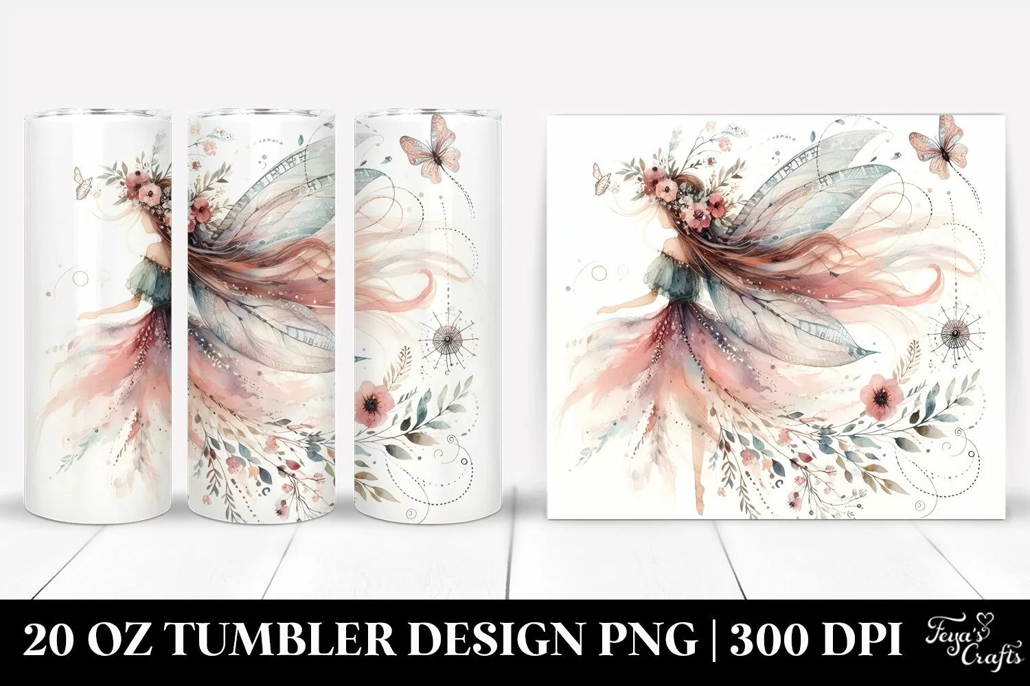 Watercolor Fairy Clipart Boho Png White Washed Sublimation Tumbler