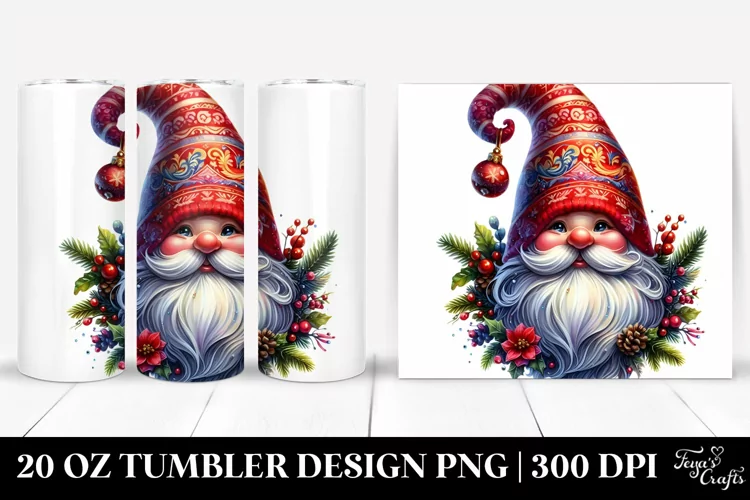 Detailed Vibrant Watercolor Christmass Gnome | 20 oz Tumbler example image 1