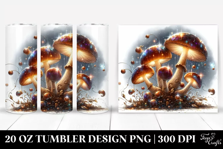 Shiny Clipart Detailed Png Mushroom Sublimation Tumbler Whitebackground Watercolorsplash