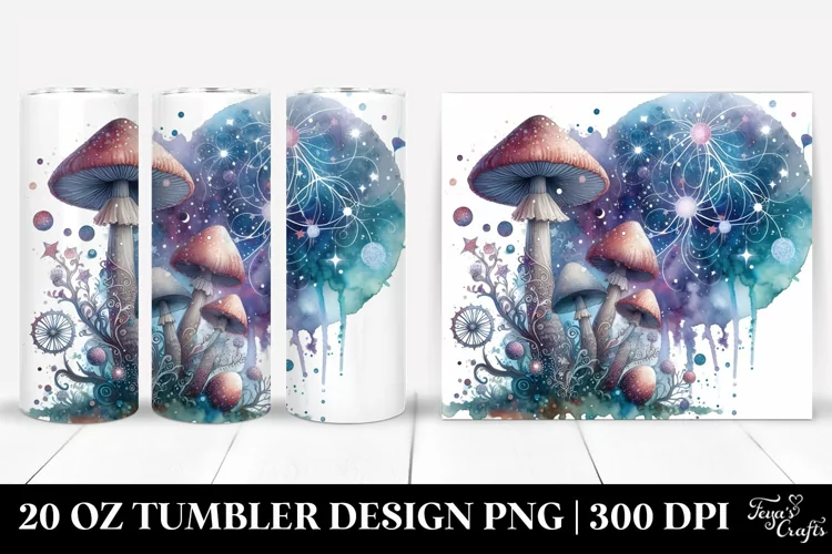 Celestial Mushroom Watercolor Splash | 20 oz Tumbler example image 1