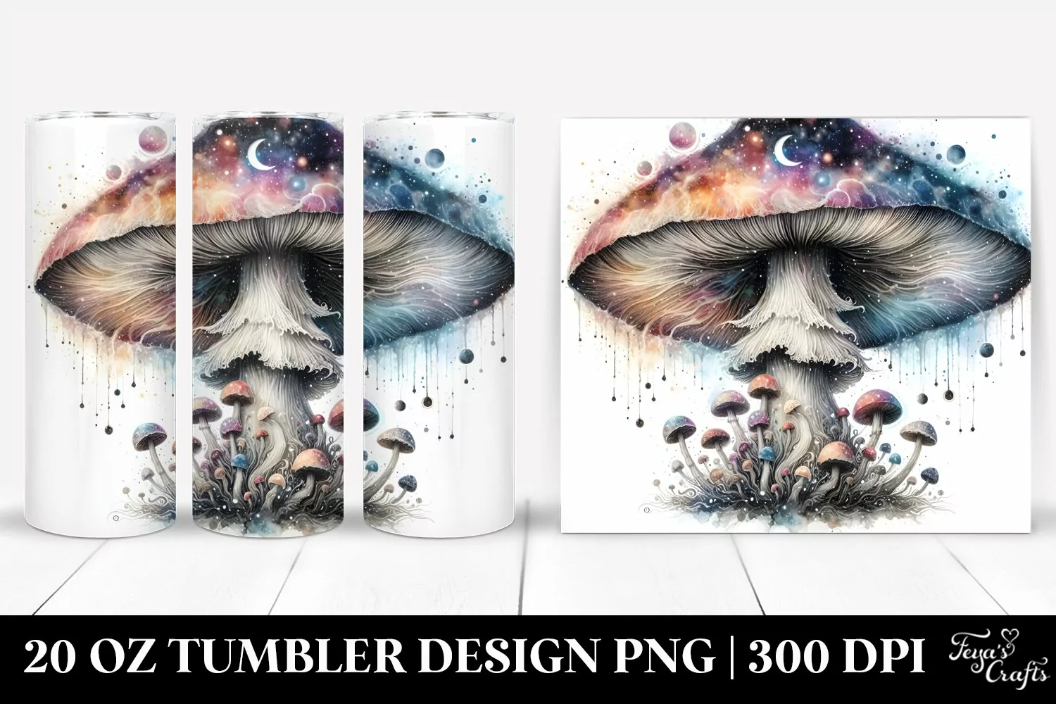 Celestial Clipart Detailed Png Mushroom Mystical Sublimation Tumbler Whitebackground Watercolorsplash