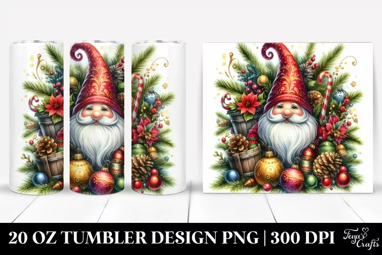 Detailed Christmas Gnome | 20 oz Tumbler example image 1