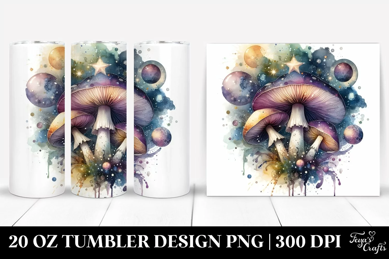 Celestial Clipart Png Mushroom Mystical Sublimation Tumbler Whitebackground Watercolorsplash