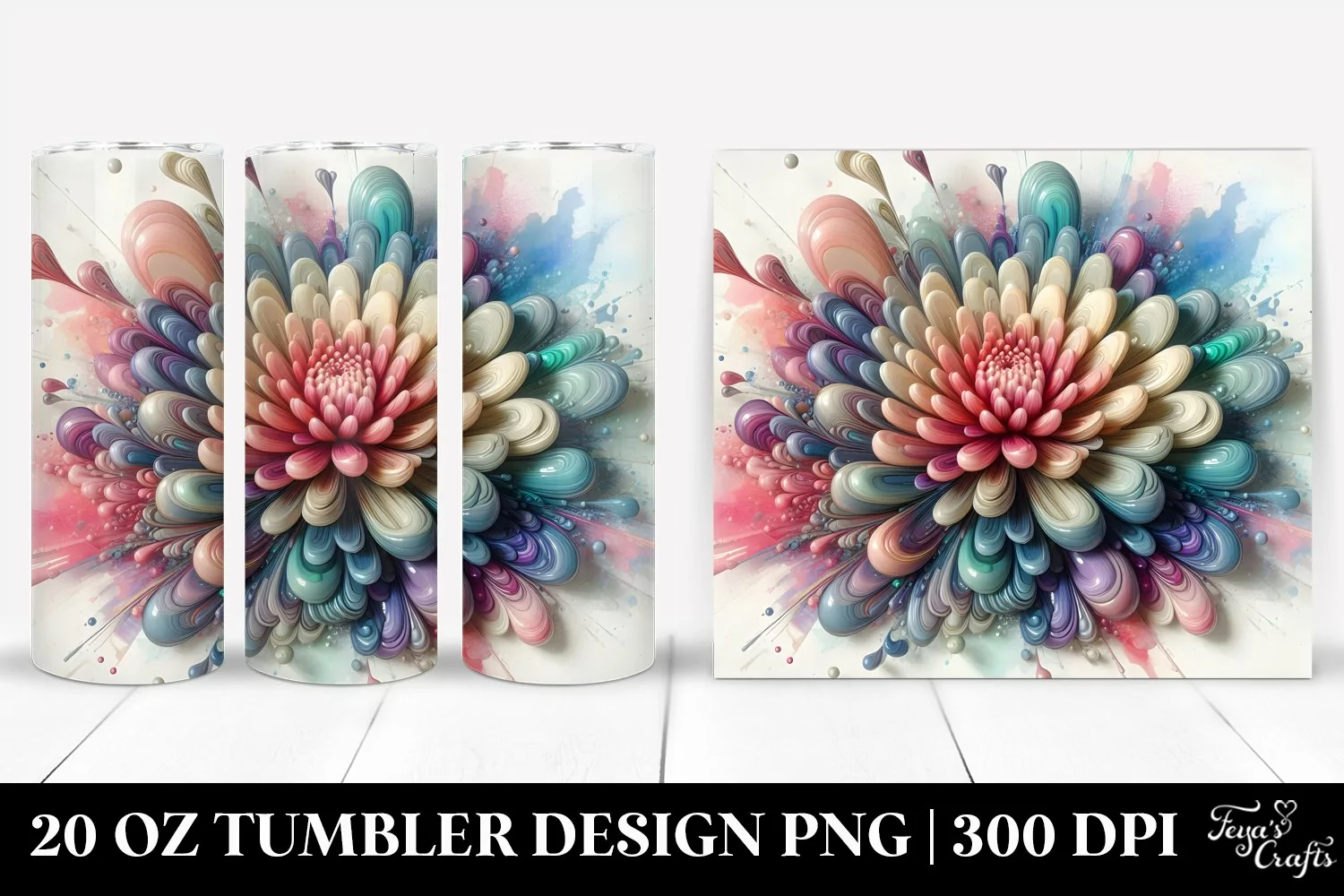 Glossy Abstract Clipart Vibrant Png Pastel Glass Chrysanthemum Sublimation Tumbler