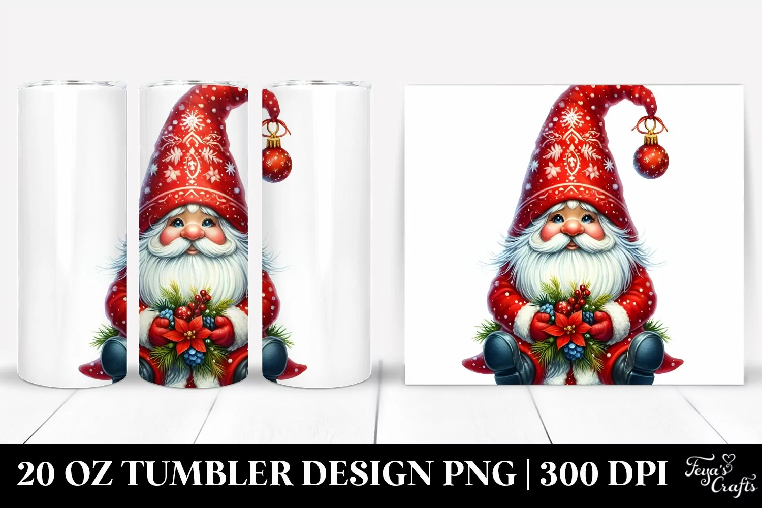 Vibrant Watercolor Christmas Gnome Tumbler example image 1