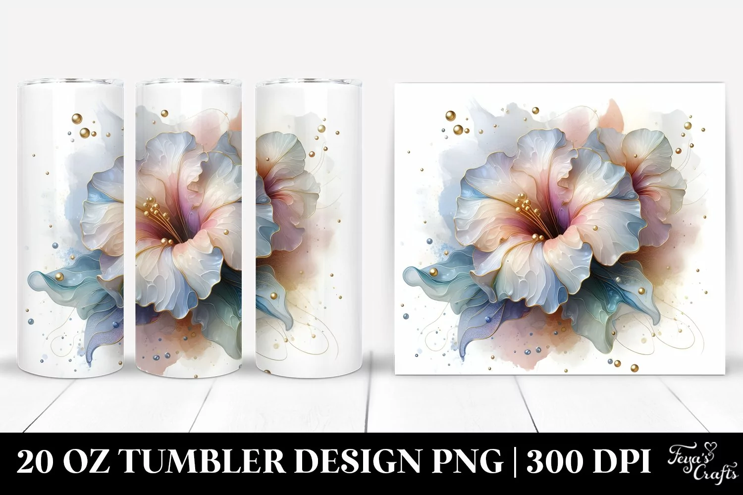 Watercolor Glossy Golden Abstract Clipart Png Glass Sublimation Tumbler Petunia