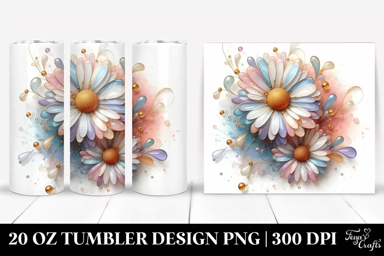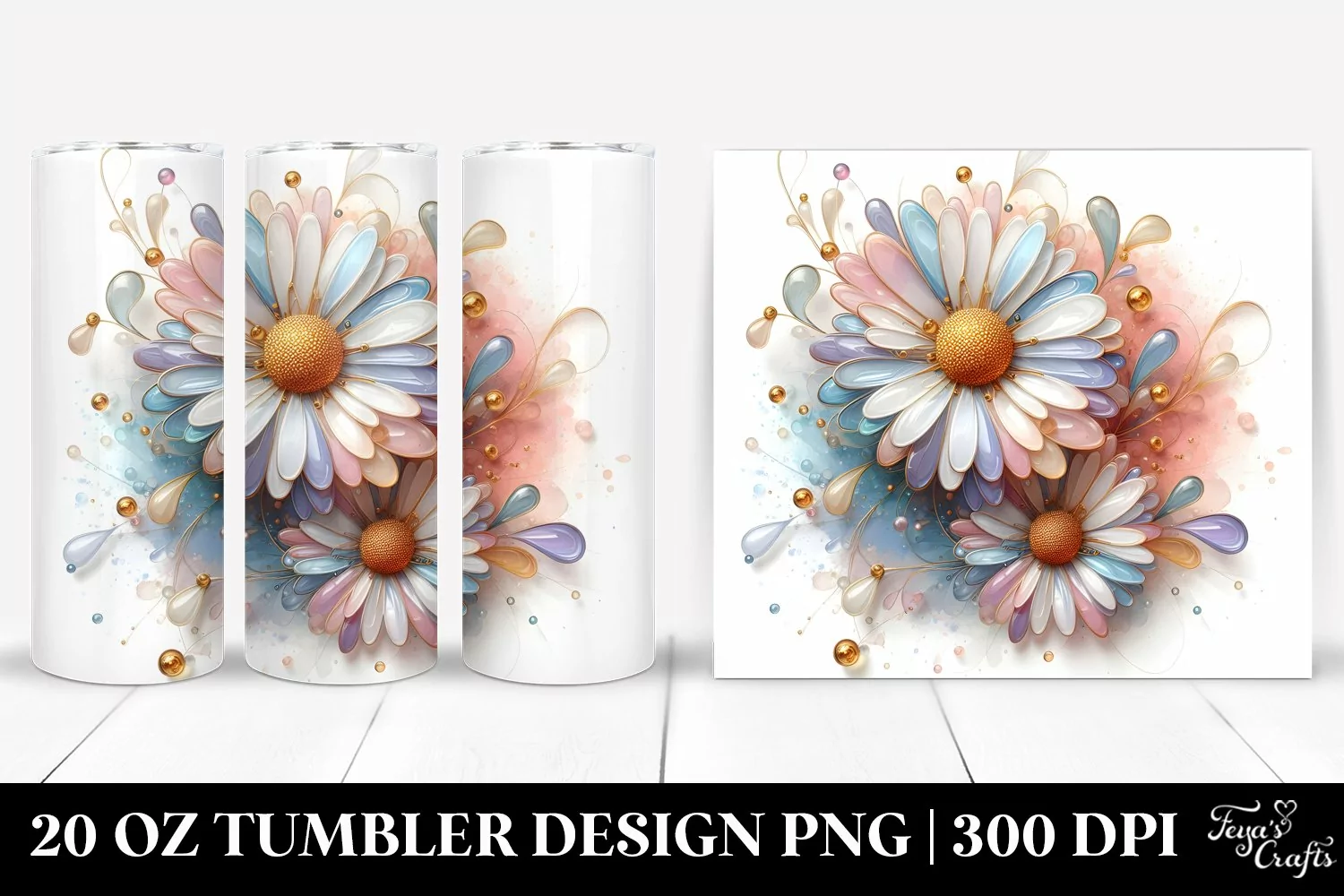 Shiny Abstract Clipart Png Pastel Glass Daisy Sublimation Tumbler Goldeninsertions