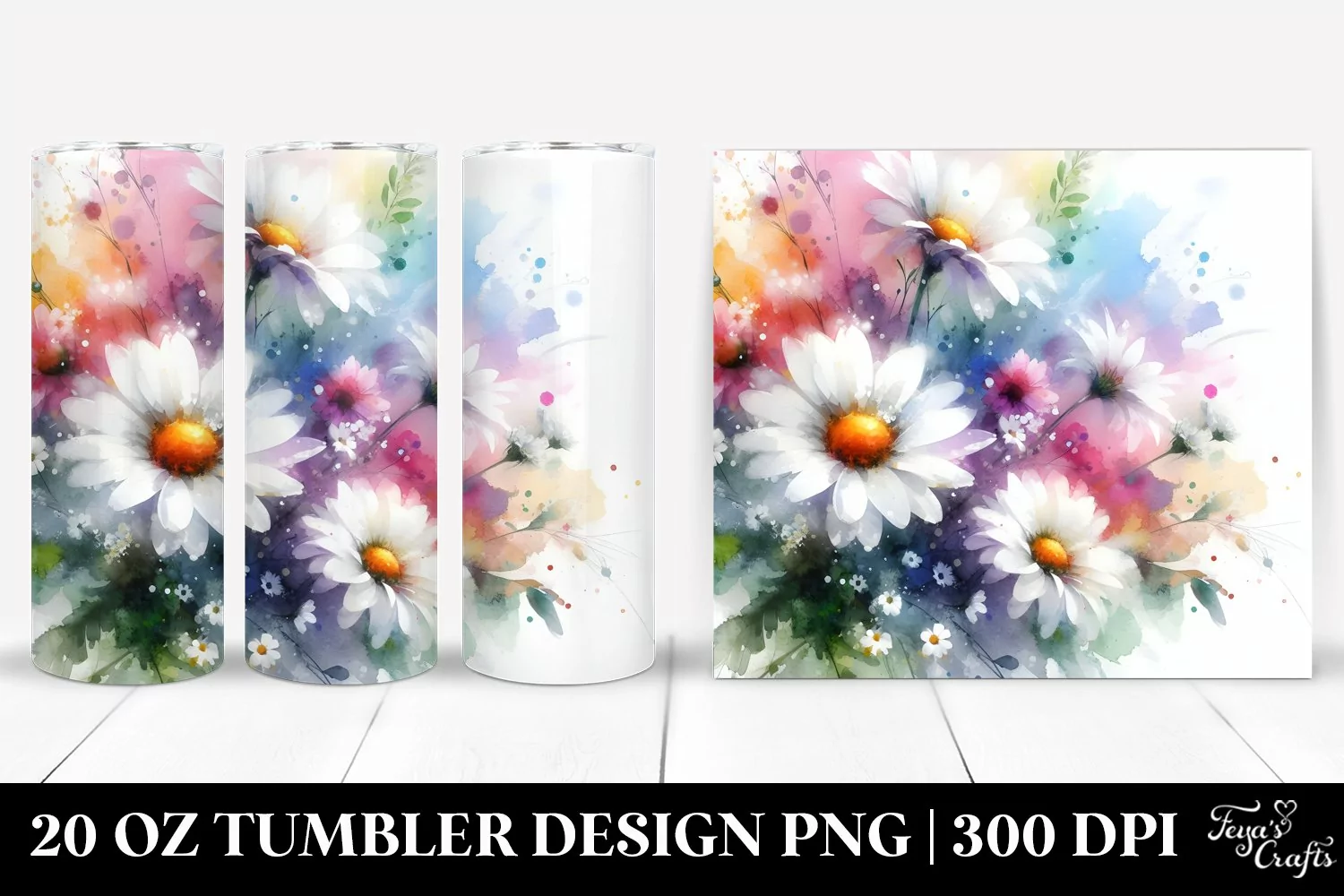 Watercolor Abstract Clipart Vibrant Png Daisy Sublimation Tumbler