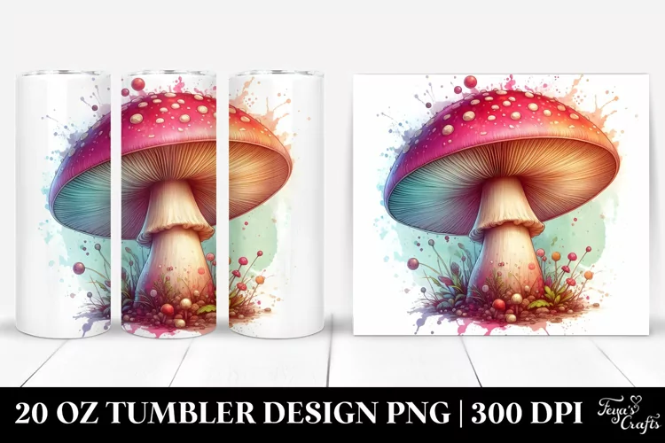 Watercolor Glossy Splash Clipart Detailed Png Mushroom Pastel Sublimation Tumbler