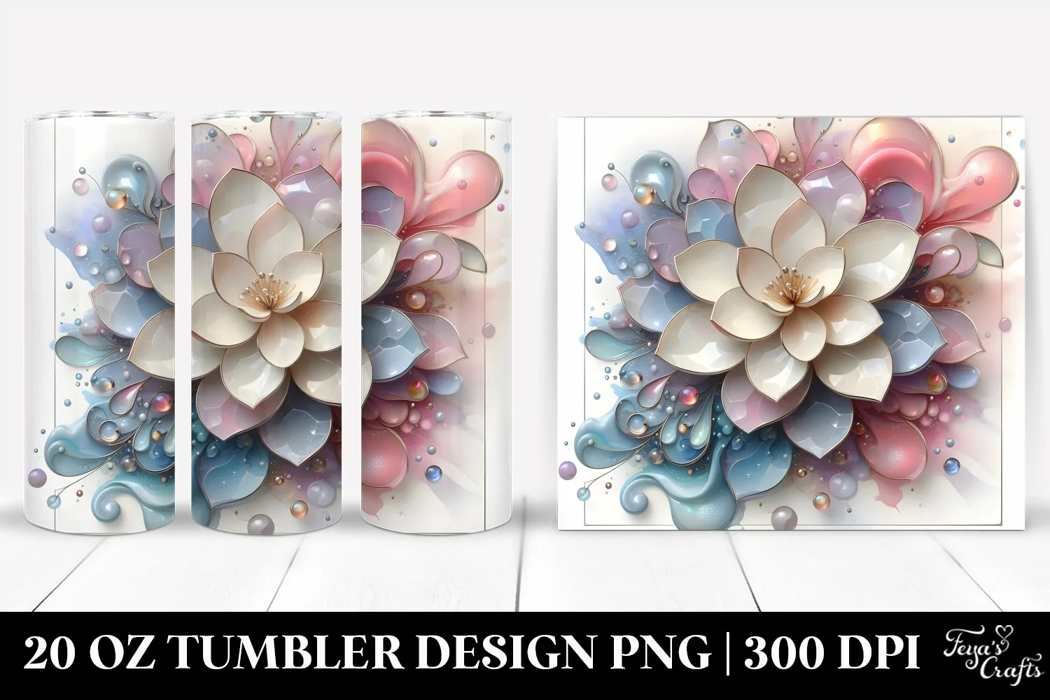 Watercolor Glossy Abstract Clipart Frame Png Metallic Sublimation Tumbler Gardenia
