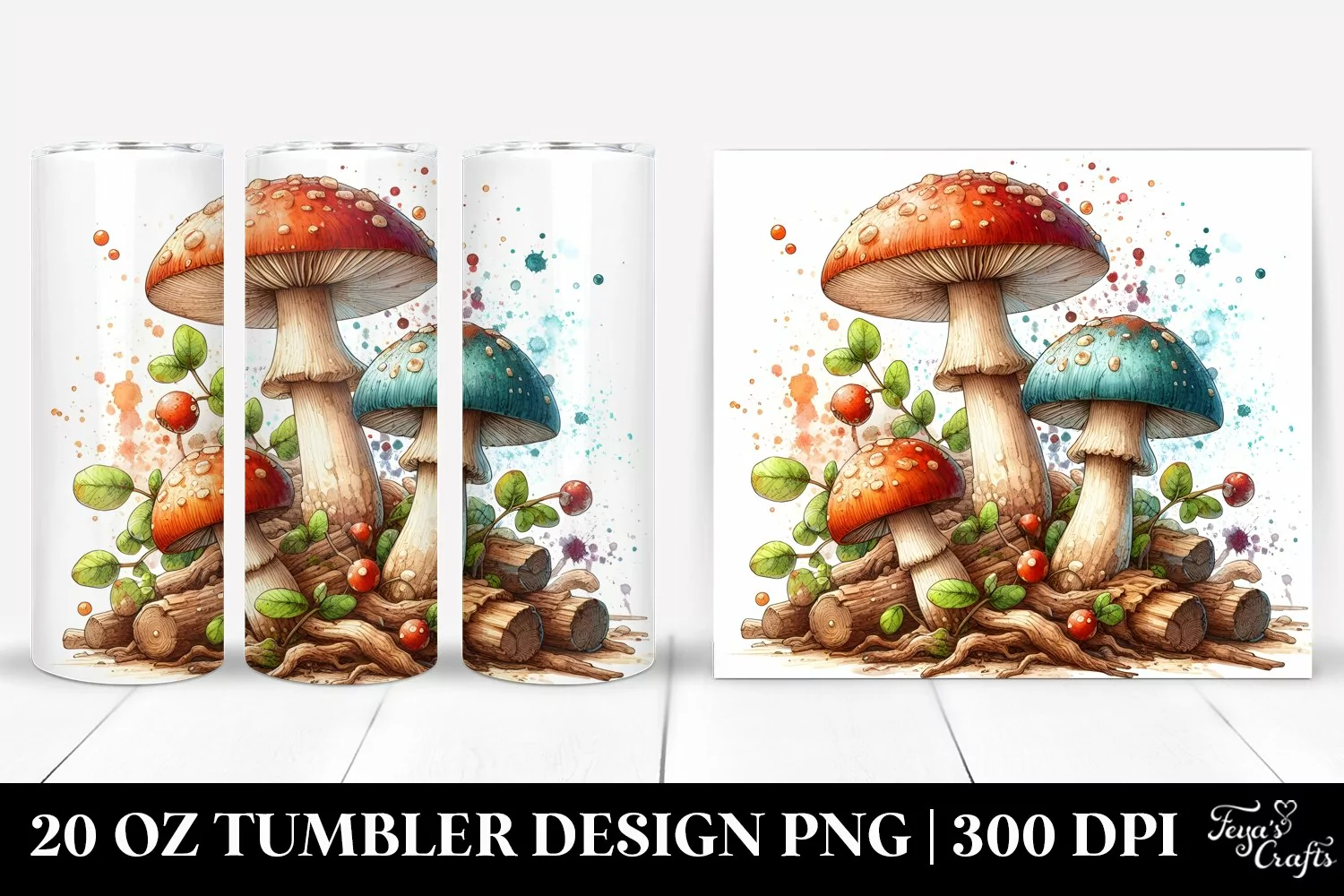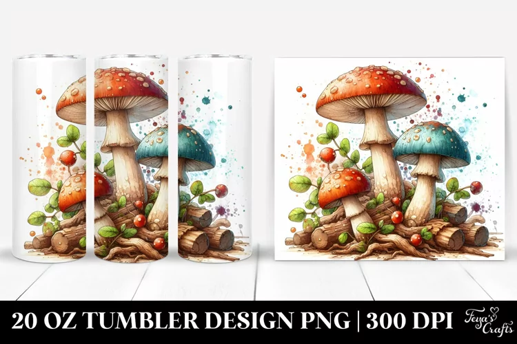Watercolor Wooden Splash Clipart Detailed Png Mushroom Sublimation Tumbler Stainedglass