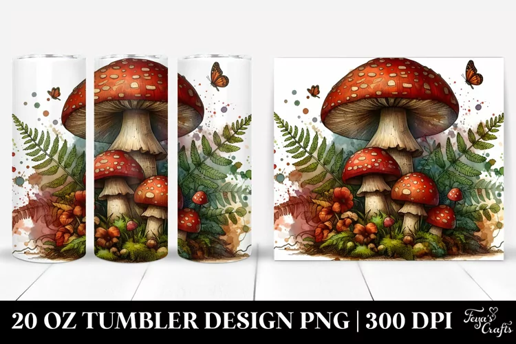 Wooden Clipart Detailed Png Mushroom Sublimation Tumbler Whitebackground Watercolorsplash Stainedglass